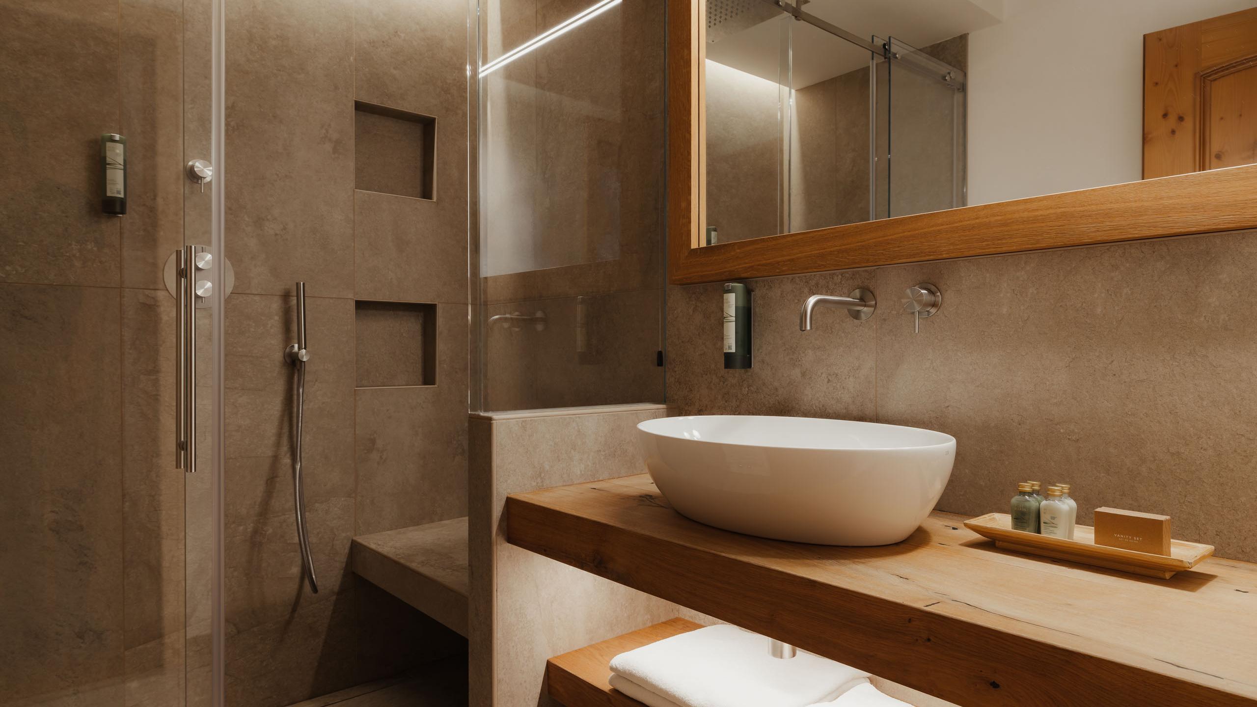 - Bagno con ampio lavabo e doccia wellness